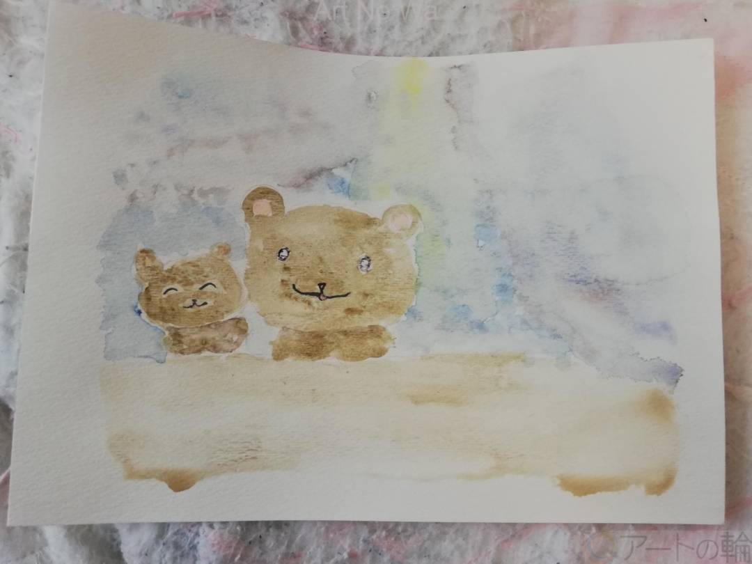 クマというかテディベアの団らんですね。スプレーを多用して作りました。
