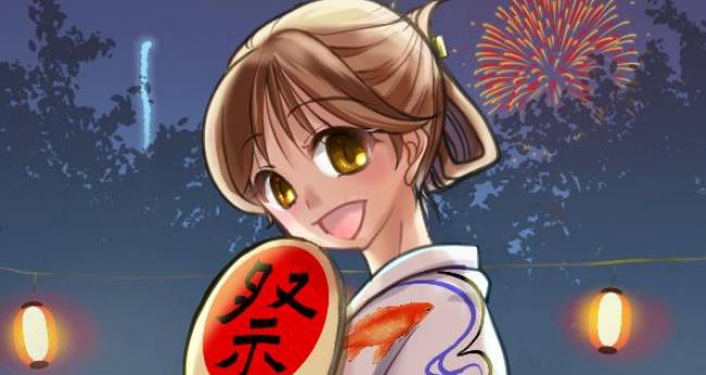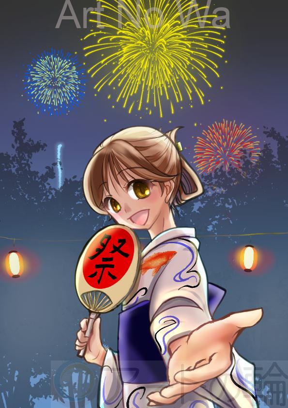 女の子が夏祭りの花火に誘ってる様子を描きました。