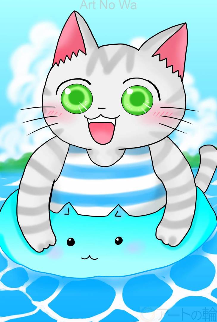 非現実,屋外,自然,海,空,夏,お盆,8月,緑,水色,青,動物,明るい,たのしい,かわいい,2D