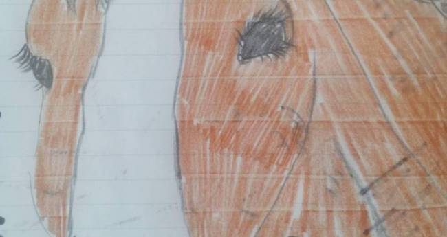 これは大学ノートに描きました。かわいいでしょ。大草原の静かな暗闇に咲く花のようにリンとつぶらな瞳で人を見つめ返す。