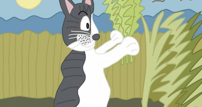 非現実,屋外,自然,山,空,秋,9月,黄色,緑,水色,青,白,黒,動物,風景,男性,大人,明るい,たのしい,かわいい,わくわく
