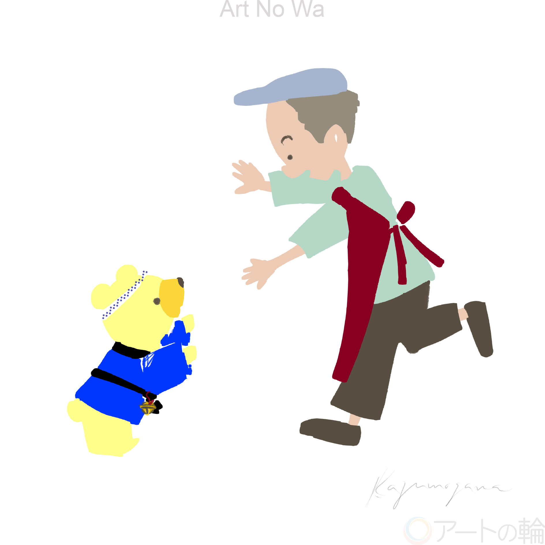 非現実,屋外,8月,黄色,青,人物,動物,明るい,かわいい,びっくり,2D