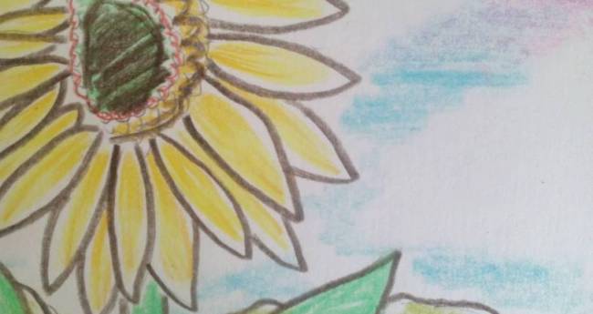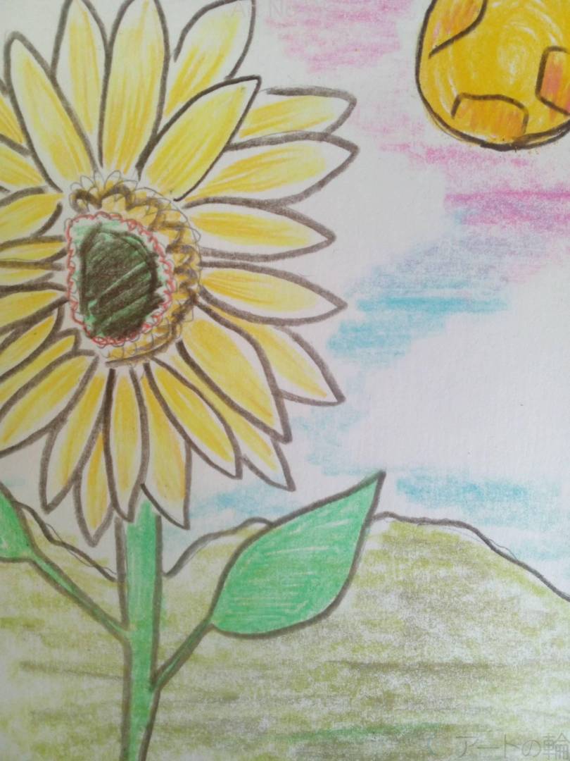 スピリチュアルアート。キレイな空にひまわりが咲いています。月のしたに