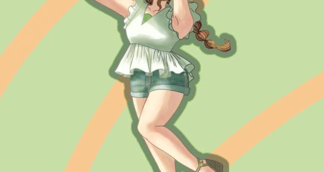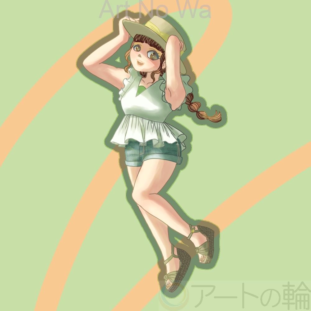 夏,オレンジ,緑,人物,女性,大人,明るい,かわいい