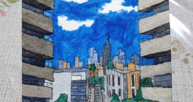 10年以上前に撮ったこの景色を見る度、あの日々があったから今の自分がいるんだと思いつつ描いた。また、この頃は鬱が酷い時期で、その頃に来てくれた方が伝えてくれた言葉のお陰で、今の精神疾患が少し安定してるのかな、と思い感謝している。