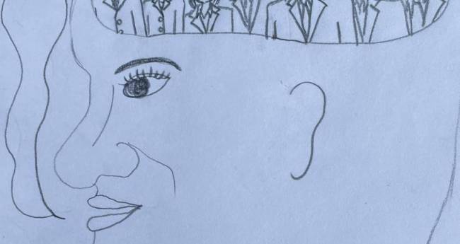 世の中には頭の中に何人弁護士を雇っているのかと思う様な自己弁護の塊の様な人間が結構いるので、それを自分なりに絵にしてみました。