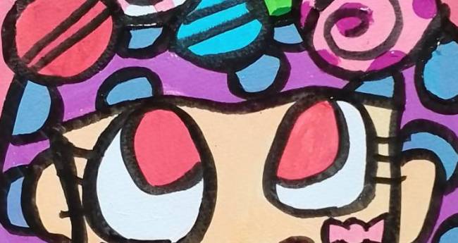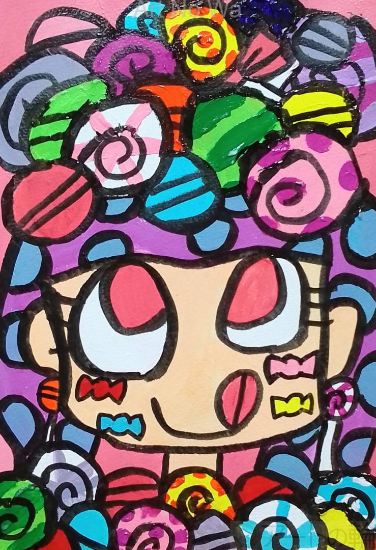 頭をキャンディでデコしてる女の子を描いてみました。