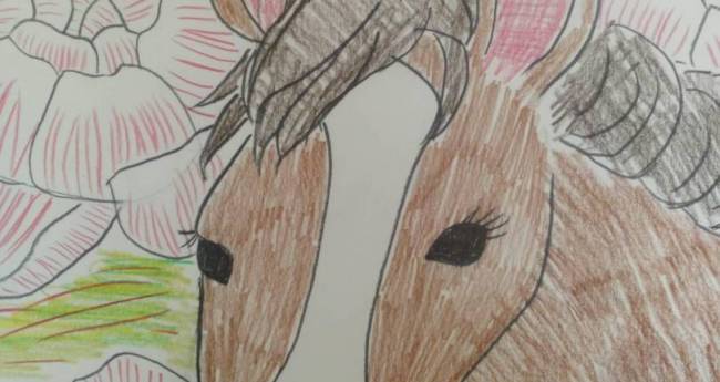 一頭の子馬が朝の草原に気持ちよくはしる。