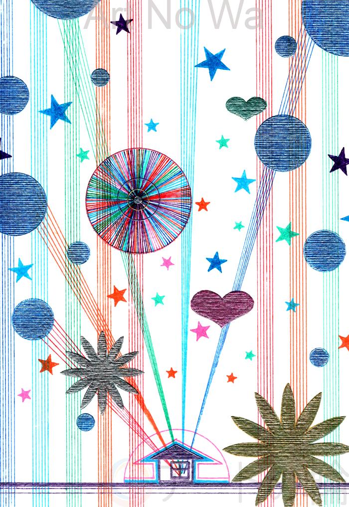 非現実,空,風景,建造物,記号,星,明るい,たのしい,かわいい,わくわく