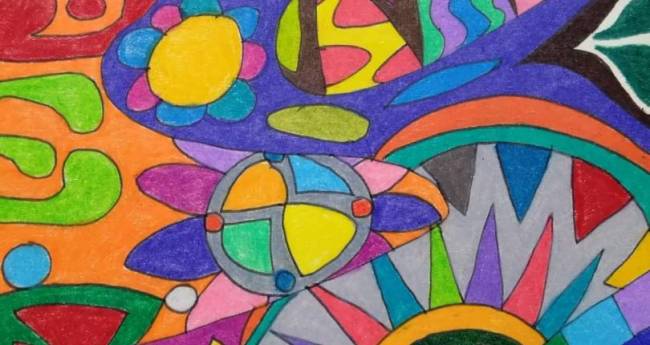 非現実,屋外,赤,オレンジ,黄色,緑,水色,青,紫,黒,記号,明るい,暗い,たのしい,かわいい,わくわく,どきどき,忙しい,びっくり,2D