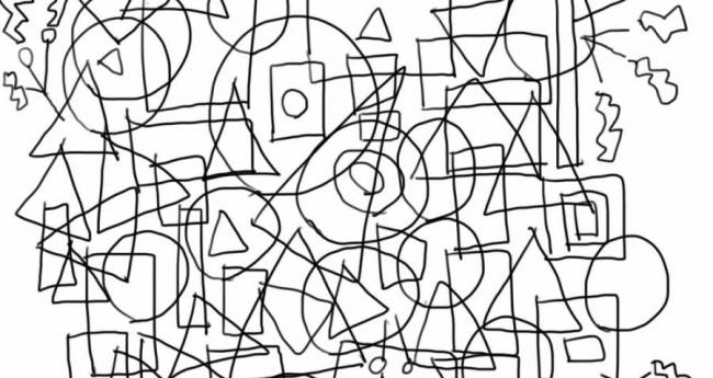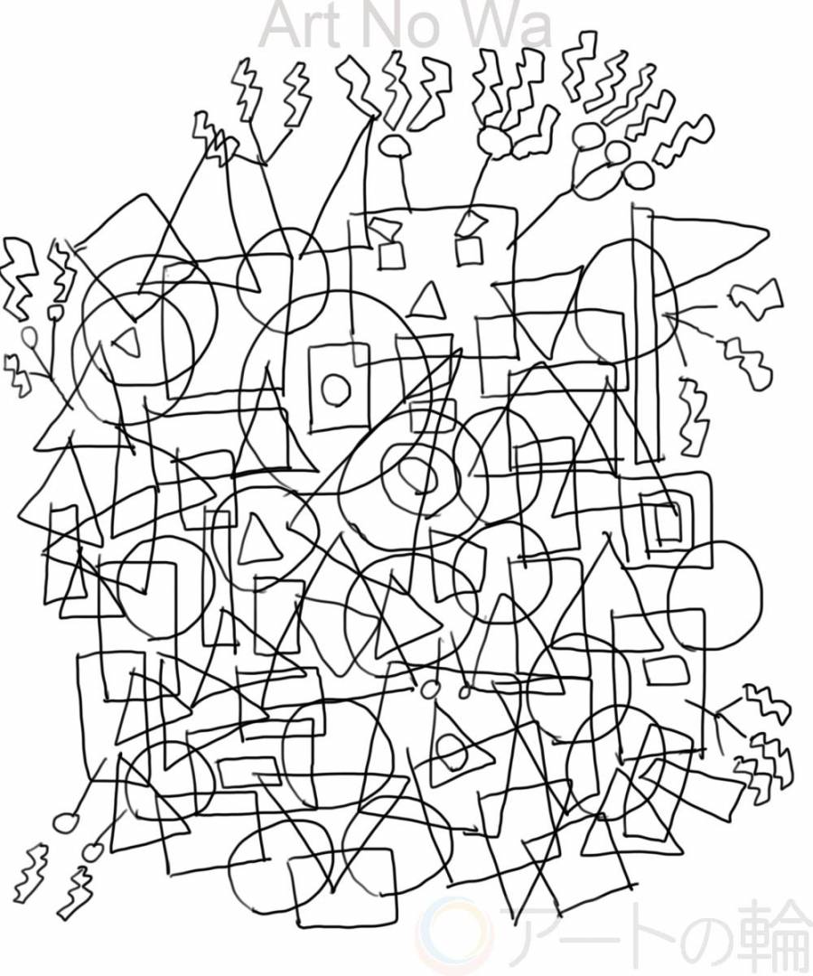 パニックを起こしていた時に描き始めました。イライラもやもやする気持ちを、四角と丸と三角だけで絵にしてみました