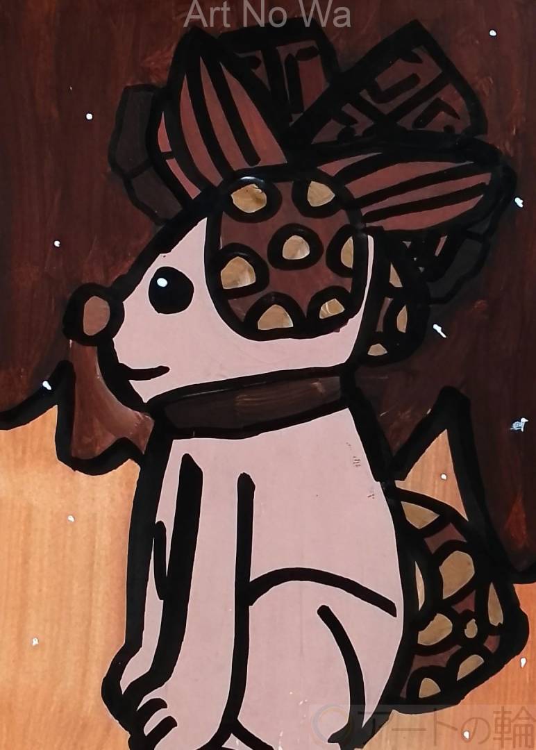 頭にチョコとアーモンドを乗せている犬を描いてみました。