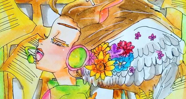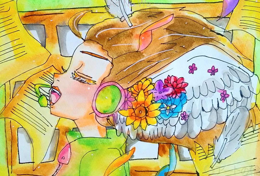 花のように咲き誇るような歌声を出して歌っている女の子を描いてみました。