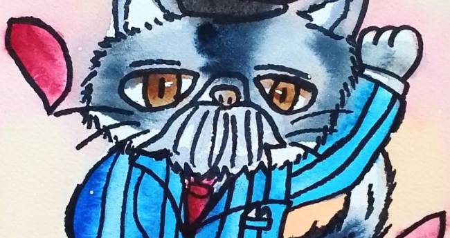 英国紳士の格好をしているおじさん猫を描いてみました。