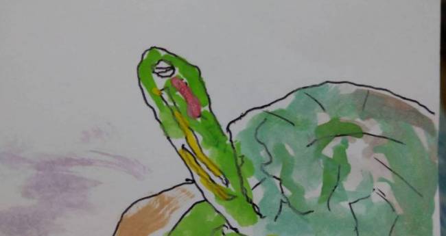 かめ、上を向く