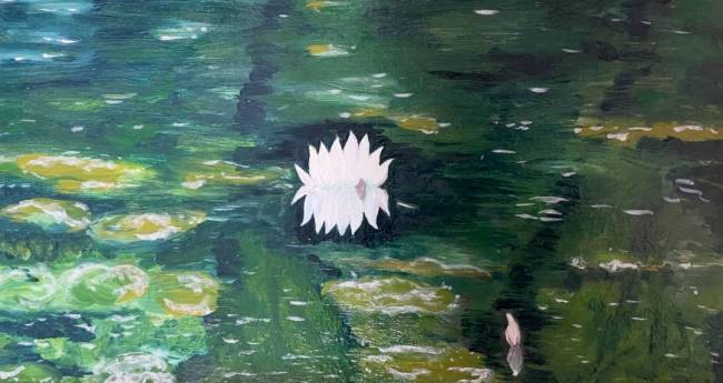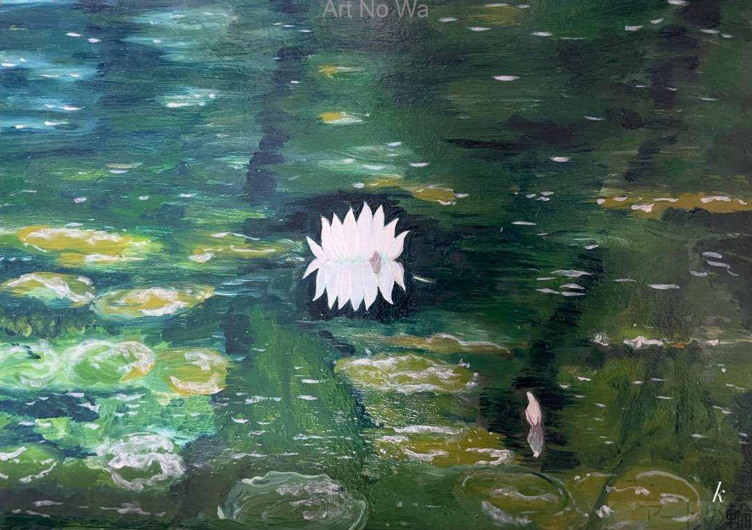 睡蓮が遠くに咲いていました。水面に浮かぶ様子を描くのに苦労しました。