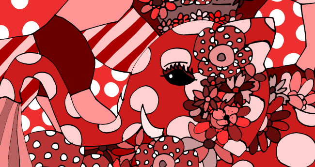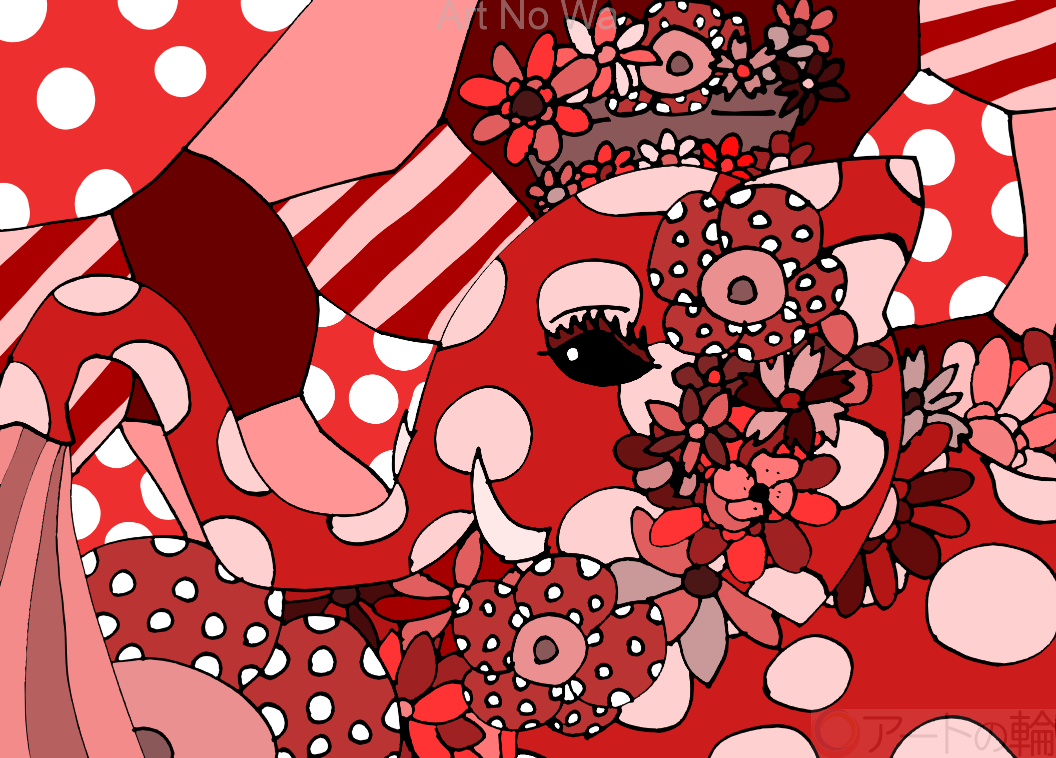 象が愛情を持って花に水やりをしている様子を描いてみました。