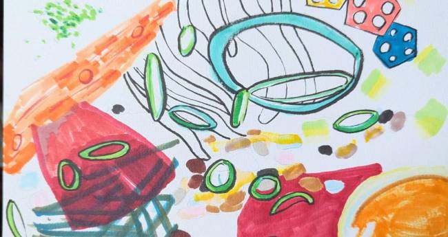 大人の発達障がい者等の居場所作りを目的としている当事者会「空色のアトリエ」にて創作活動中。現在はポストカードにファンタジーや現実世界の食べ物を描いています。