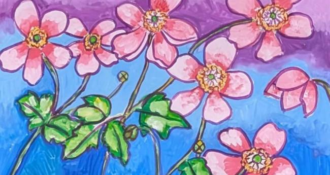 小学3年生の頃学校の先生が読書感想画のコンクールをすすめて参加したら入賞したきっかけで母のすすめもあり絵を描くのが好きになりました。特に花が好きで紙に大好きな花…