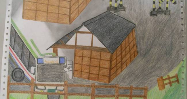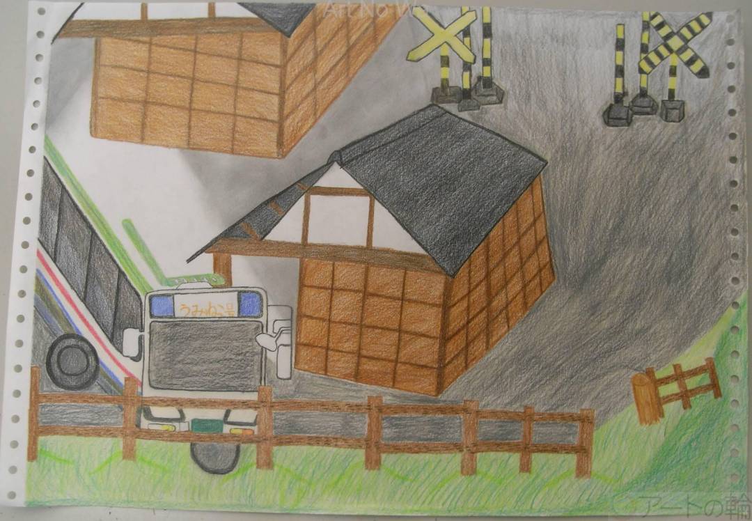 インフォメーションセンターから見える市営バスと天然しばを書きました。