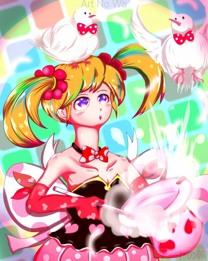 オレンジ,黄色,白,黒,人物,動物,女性,明るい,たのしい,かわいい,びっくり,2D