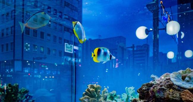 夜の街を泳ぐ魚たち。眠れない夜は街を徘徊。癒しに出合い、ナイト睡眠具。