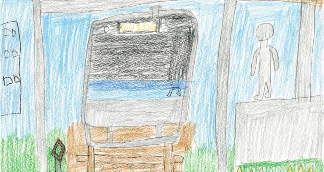 仙台と石巻を結ぶ仙石線205系を描いてみました!多賀城市の下馬駅をモデルに。画力はまだまだですが。