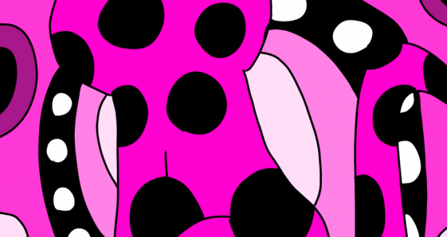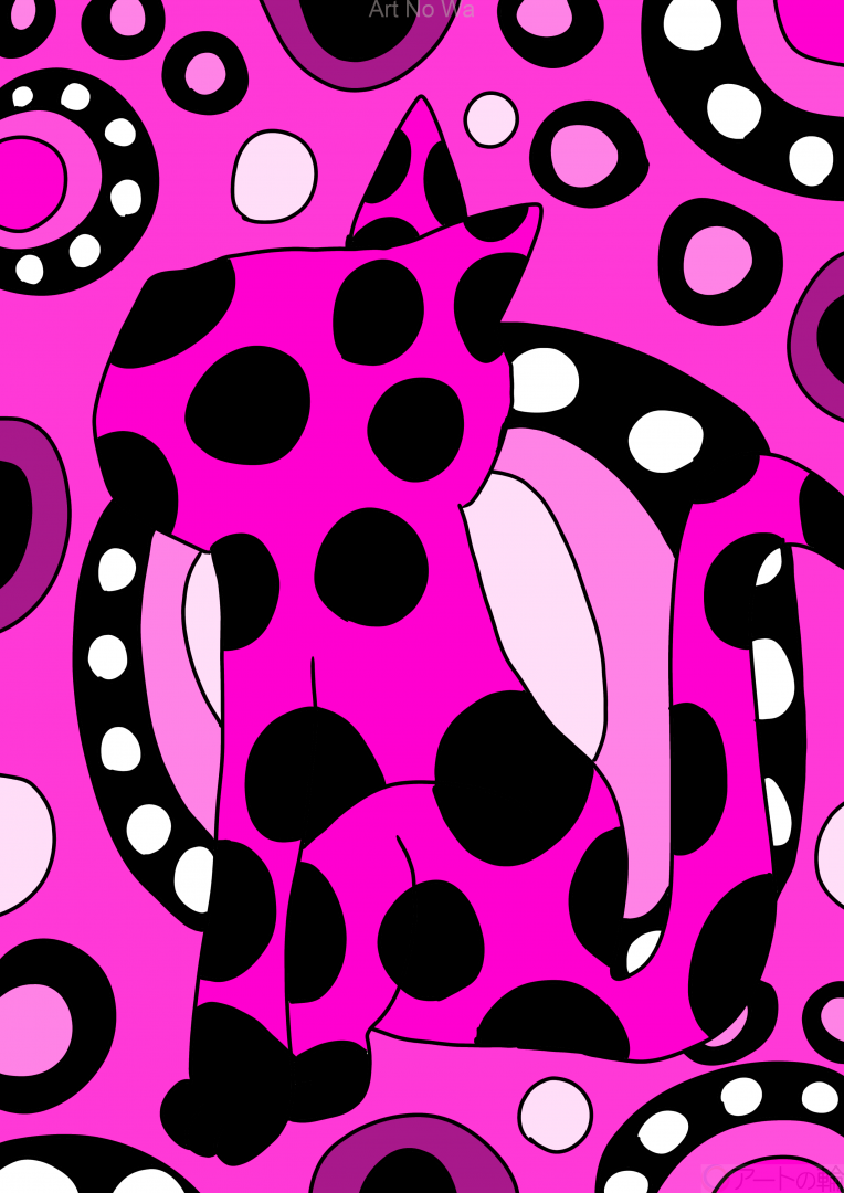 可愛い黒とピンクの水玉の猫を描いてみました。