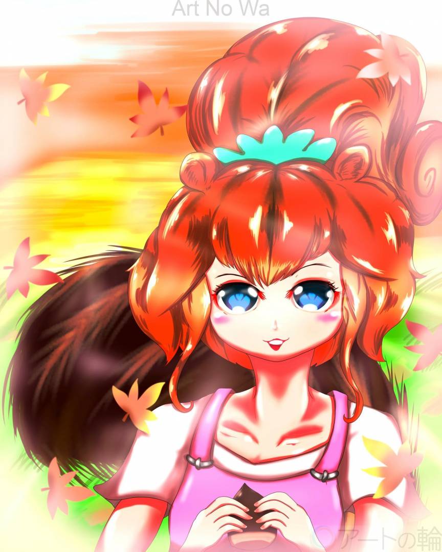 屋外,秋,赤,オレンジ,黄色,想像上の生き物,明るい,かわいい,2D