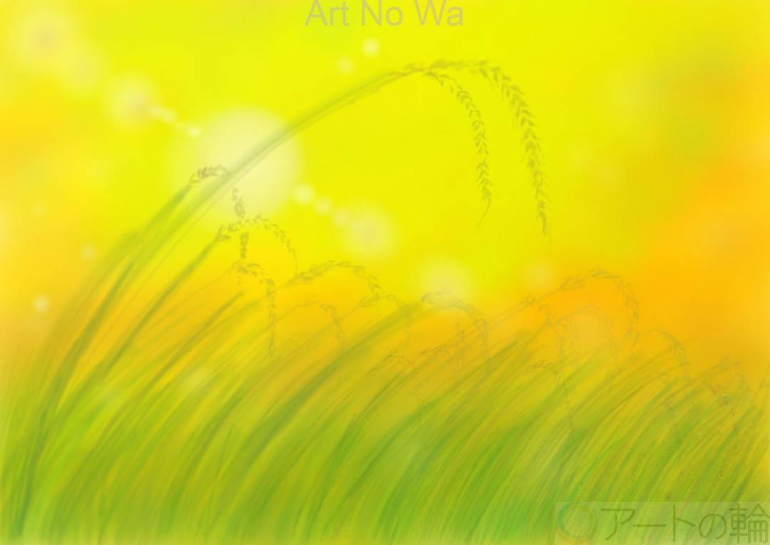 夕刻の実りのある情景です。黄色い絵が描きたかったです