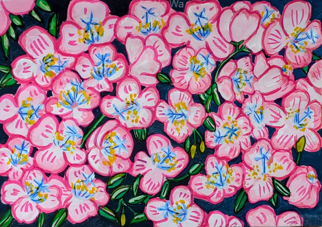 小学3年生の頃学校の先生が読書感想画のコンクールをすすめて参加したら入賞したきっかけで母のすすめもあり絵を描くのが好きになりました。特に花が好きで紙に大好きな花…