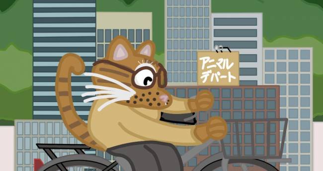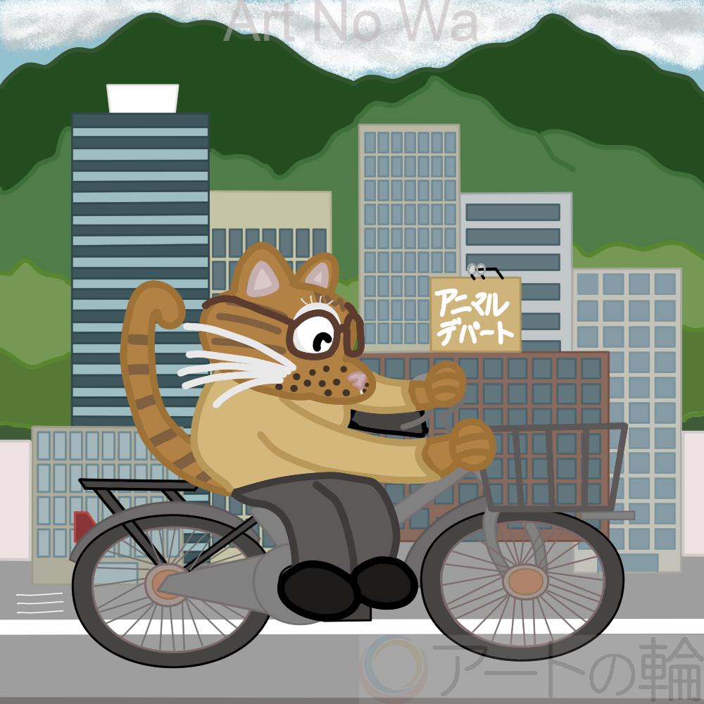 猫が、自転車で、街中を走っている所を再現しました。オリジナル作品です。