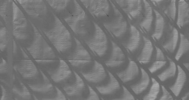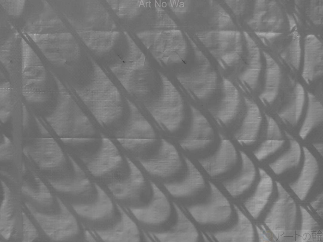 工事現場のシートの向こう側に影の魚体 。重なる鱗。硬質なグリッドの反復。グリッドの皮膚。鈍色のざらついた反射。 都市の鼓動。静かに。風。光。きらめき。記憶をまとう 巨大なオブジェ。鱗の反復。鱗のオブジェ。