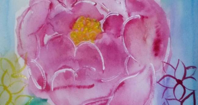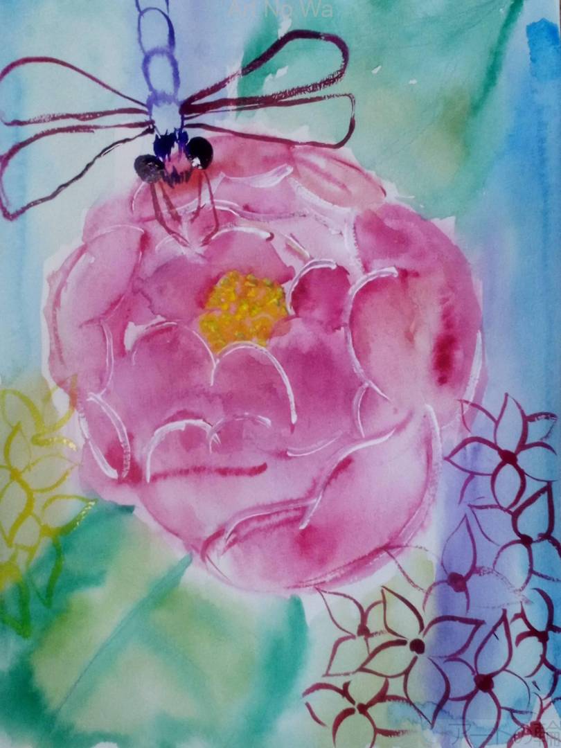悲しみの闇夜の雨に芍薬が咲き誇り蜻蛉が励ますように飛ぶ