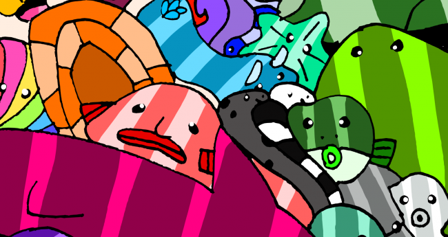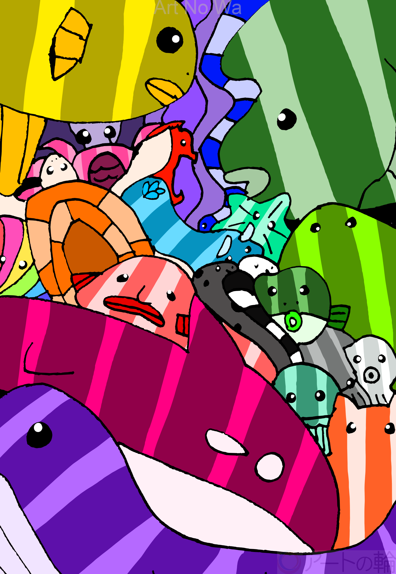 色んな海の生き物をカラフルにパズルっぽく描いてみました。