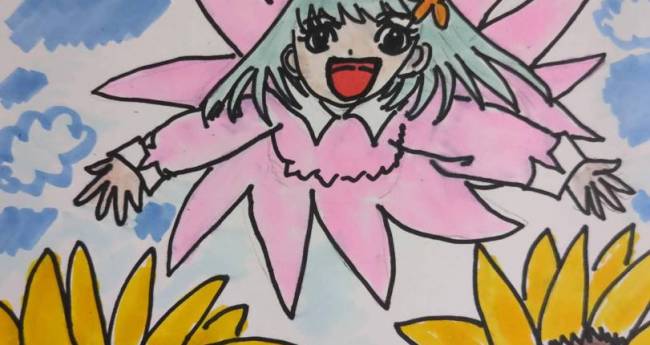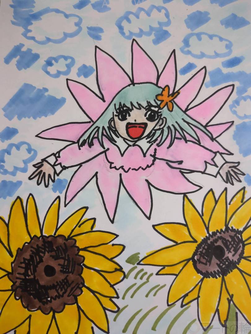 非現実,屋外,自然,空,夏,黄色,人物,植物,明るい,たのしい,かわいい,どきどき
