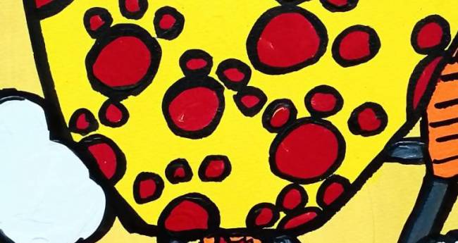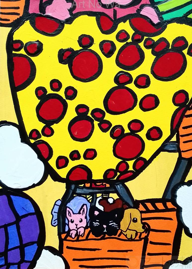 色んな動物を乗せて空を飛んでいるっ球を書いてみました。