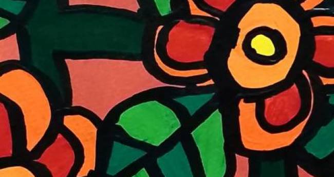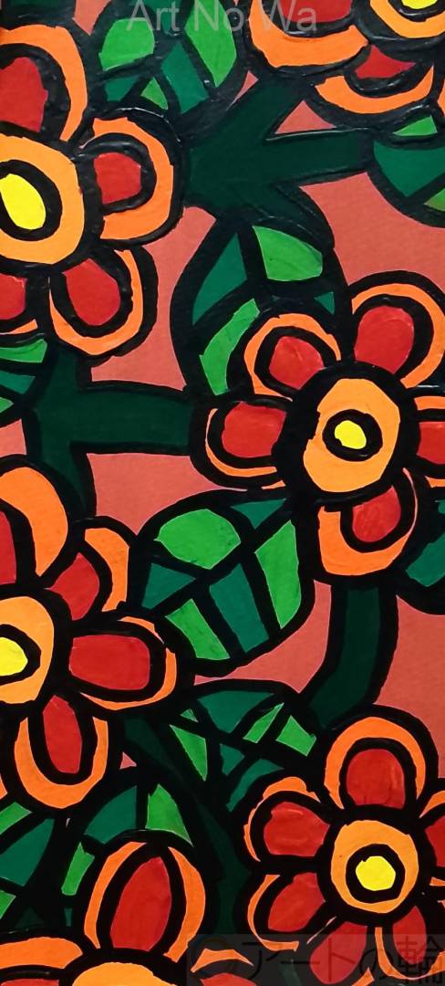 明るく輝くオレンジ色の花を描いてみました。
