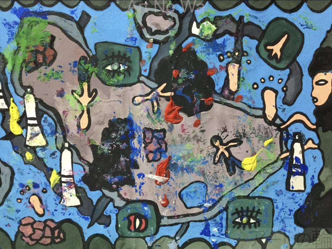 現実,非現実,お盆,季節の行事,赤,オレンジ,黄色,緑,青,白,黒,風景,記号,忙しい