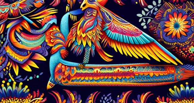 「光と羽根のオトミ」は、色彩と質感を通じて、自由と儚さを同時に描き出す試みです。柔らかな光が羽根に反射する様子は、存在の軽やかさと時間の移ろいを象徴し、観る者を静かに内面へ誘います。オトミ刺繍の伝統的モチーフを抽象化することで、過去と現代、自然と人の営みの間に横たわる微細な調和を表現しました。