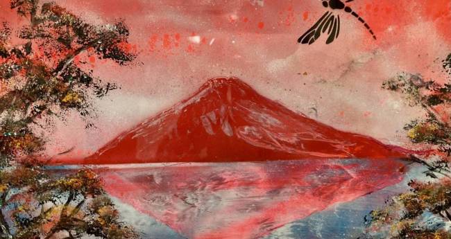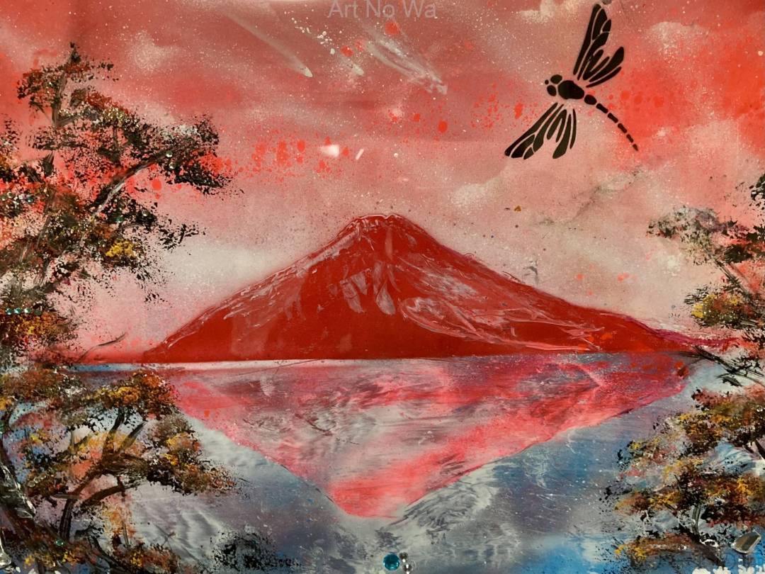 「燃えるような紅に染まる大地と空。 その静寂を舞うトンボは、命の象徴。 光と影が響き合い、幻想の世界を描きました。」 “Crimson skies and a land ablaze with light. A dragonfly drifts through the silence, a symbol of life’s eternal glow. A vision of harmony between light and shadow.”