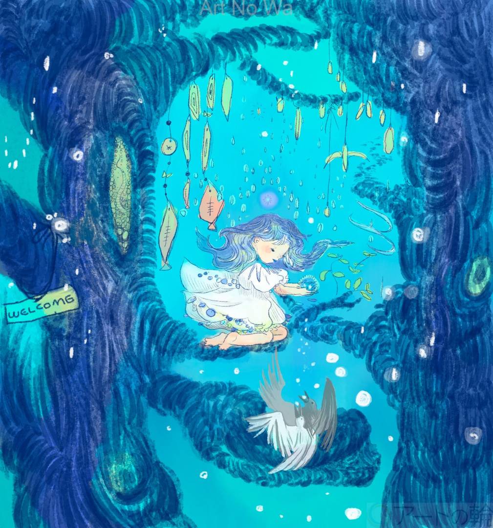 もうひとつの世界で暮らしているあのめちゃん。鳥さんに“どうぞ”をしている場面。