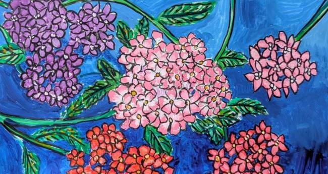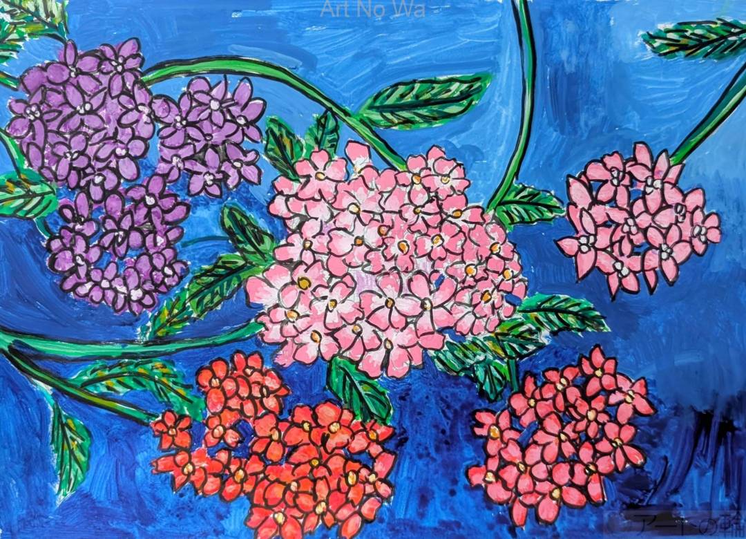小学3年生の頃学校の先生が読書感想画のコンクールをすすめて参加したら入賞したきっかけで母のすすめもあり絵を描くのが好きになりました。特に花が好きで紙に大好きな花…