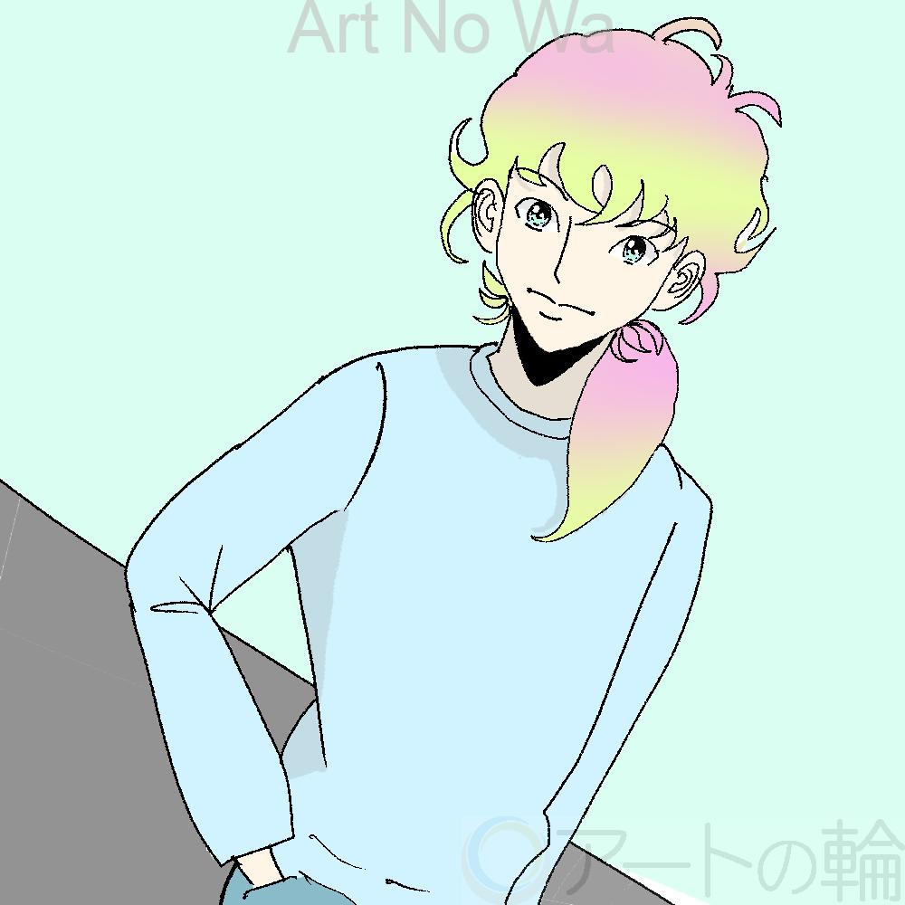 個性的な髪の男性を描きました