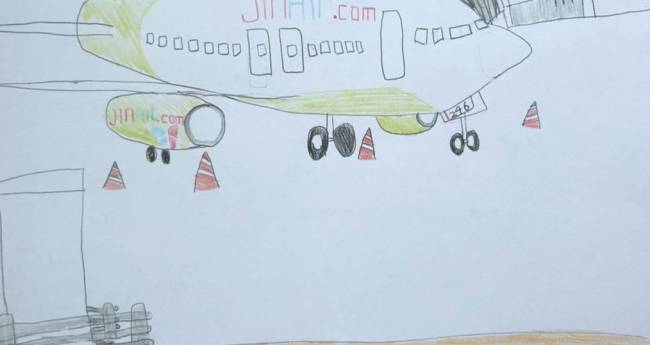 空港の国際線ターミナルから撮った写真をもとに描きました