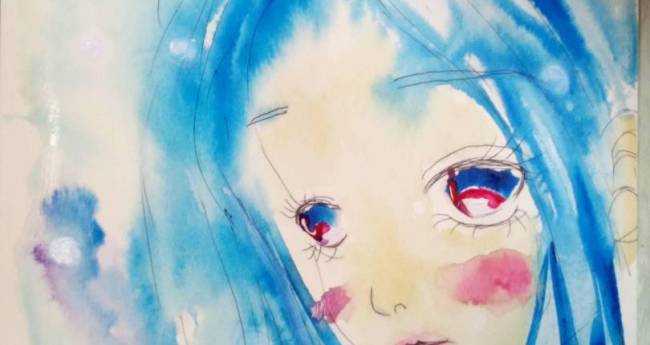 水色,青,紫,白,人物,星,女性,明るい,たのしい,かわいい,2D