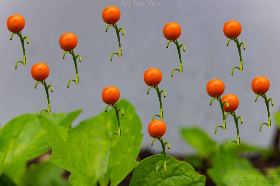 現実,非現実,屋外,現在,お盆,8月,9月,オレンジ,緑,植物,静物,明るい,たのしい,かわいい,わくわく,びっくり,ホラー