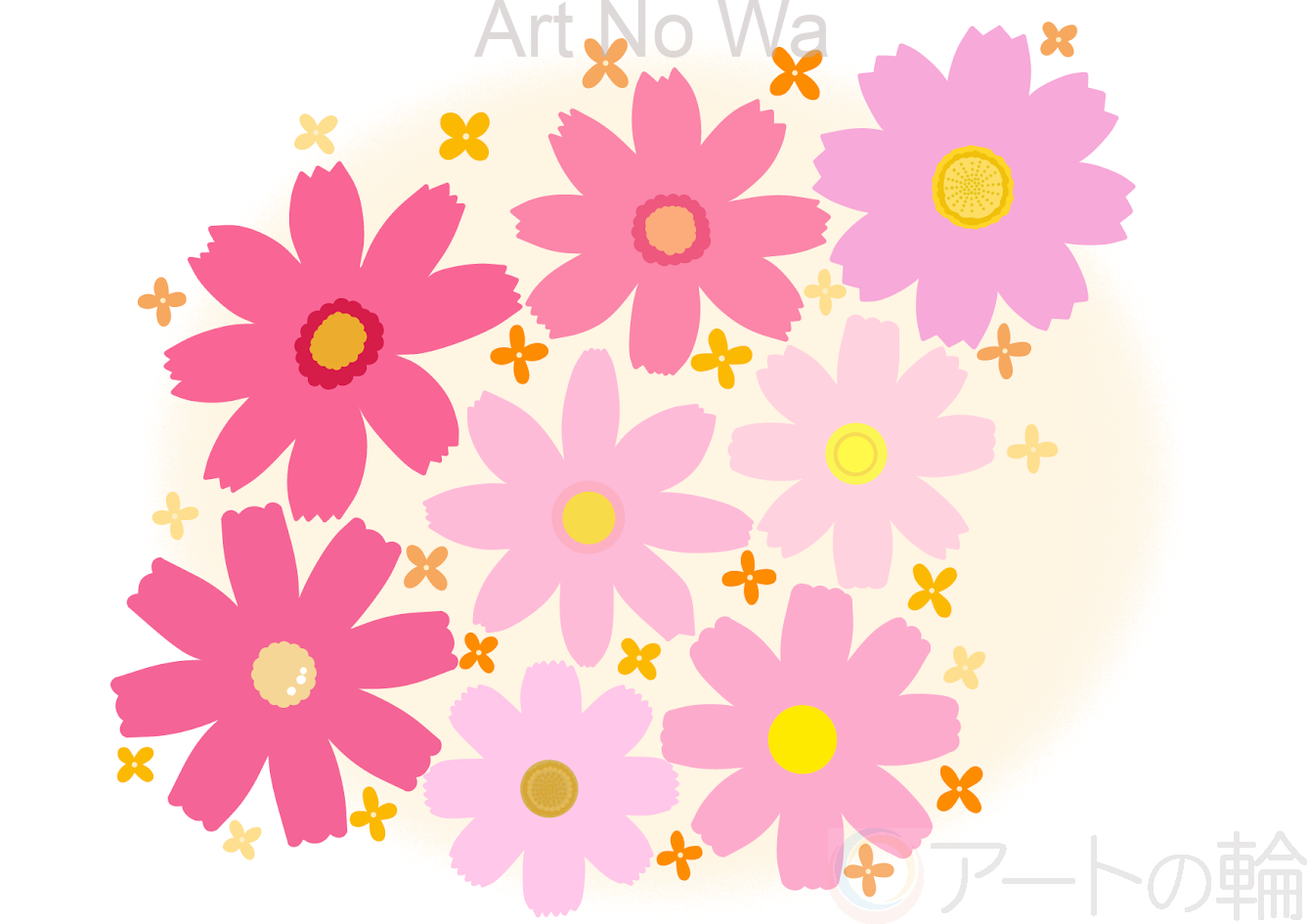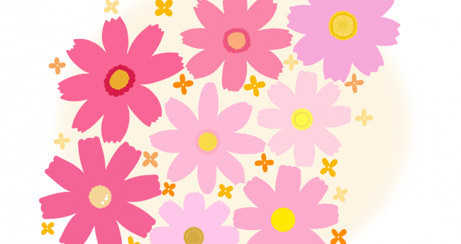 秋なので秋のお花を描いてみました。 コスモスと金木犀を色んな色や形で描きました。