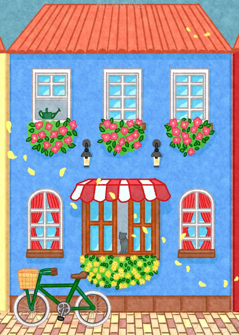現実,屋外,春,青,建造物,明るい,かわいい,2D