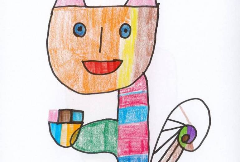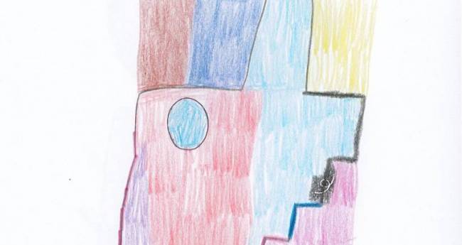 ビー玉を転がして遊んだ時の様子を描きました。